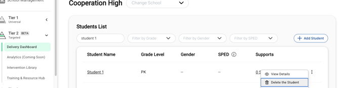 Double-check with your team before deleting a student to prevent accidental data loss.